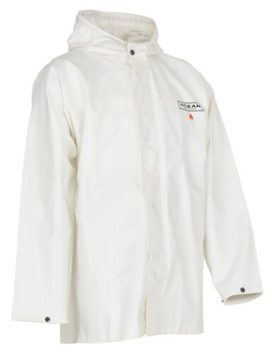 Waterproof jacket with Ocean Comfort® hood. Zipper in front with clap closed by snap fasteners. Snap fastener in sleeve ends.