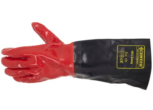 Fully dipped work gloves in PVC. Extra-long, welded cuffs and thin cotton lining. Good wet and dry grip. Ideal for handling fish and fishing equipment. Bundle: 5 - Carton: 75.