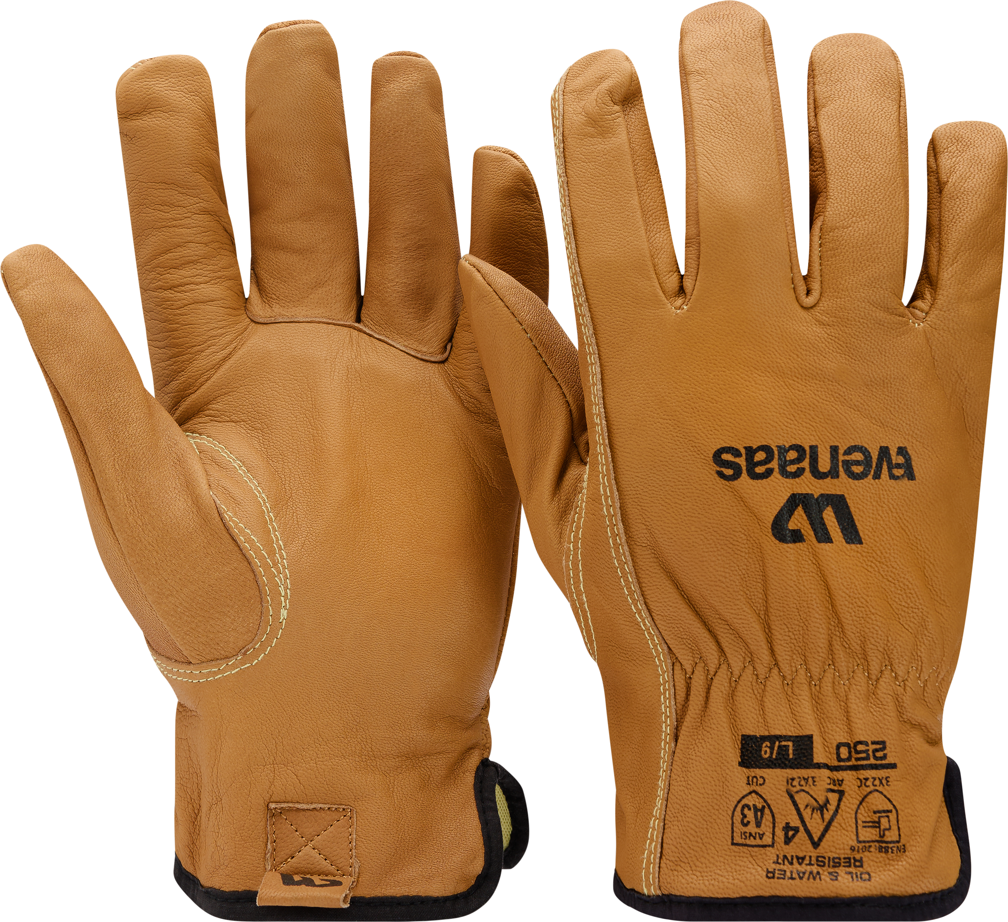 Multi-purpose, Arc-classified, specially treated goatskin, Oil- and water-repellent, seamless, Para Aramid, cut protection class C - ANSI level-A3. Protection against electric arc, level 4 arc classification with an ATPV of 48 cal/cm². Certified according to OEKO-TEX® LEATHER STANDARD. Bundle: 6 - Carton: 72