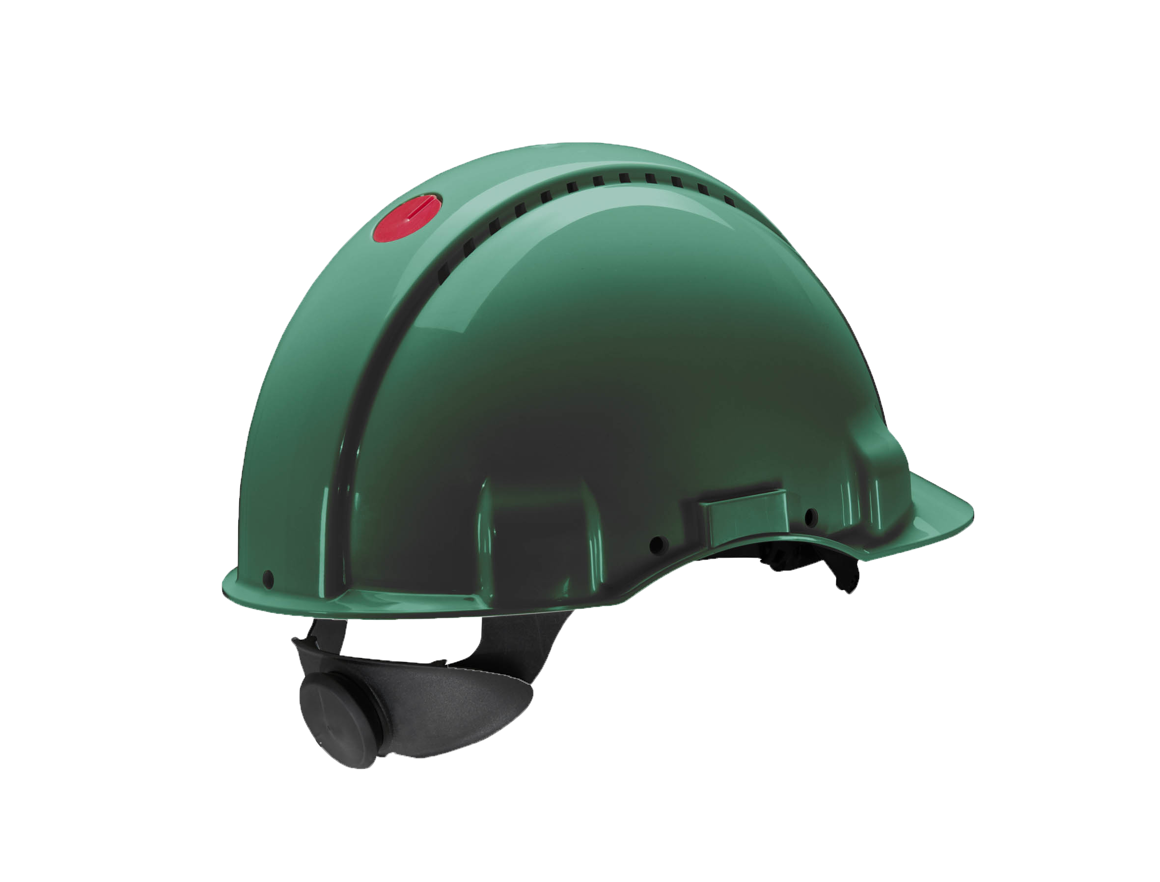 Ventilated helmet with a ratchet suspension. Excellent ventilation and good field of vision. Comfort band in plastic. Softly rounded design, with vents distributed over a larger area for maximal air flow and comfort for the wearer. Uvicator™ sensor disc indicates when the hard hat has been over-exposed to UV radiation and thus needs to be replaced. The head harness can be rotated 180° and the hard hat can be worn back-to-front to increase the upward field of vision. 30-mm slot for attachment of accessories. Size 53–62 cm. Package containing 20 units.
