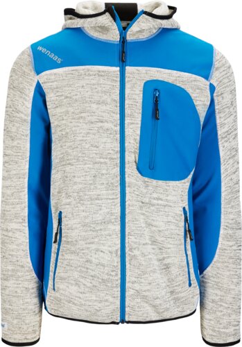 Hoodie in comfortable quality, and nice design. Two way zip in front. Softshell reinforcement on shoulders and under arms. Chestpocket at left side, to front pockets with zippers.