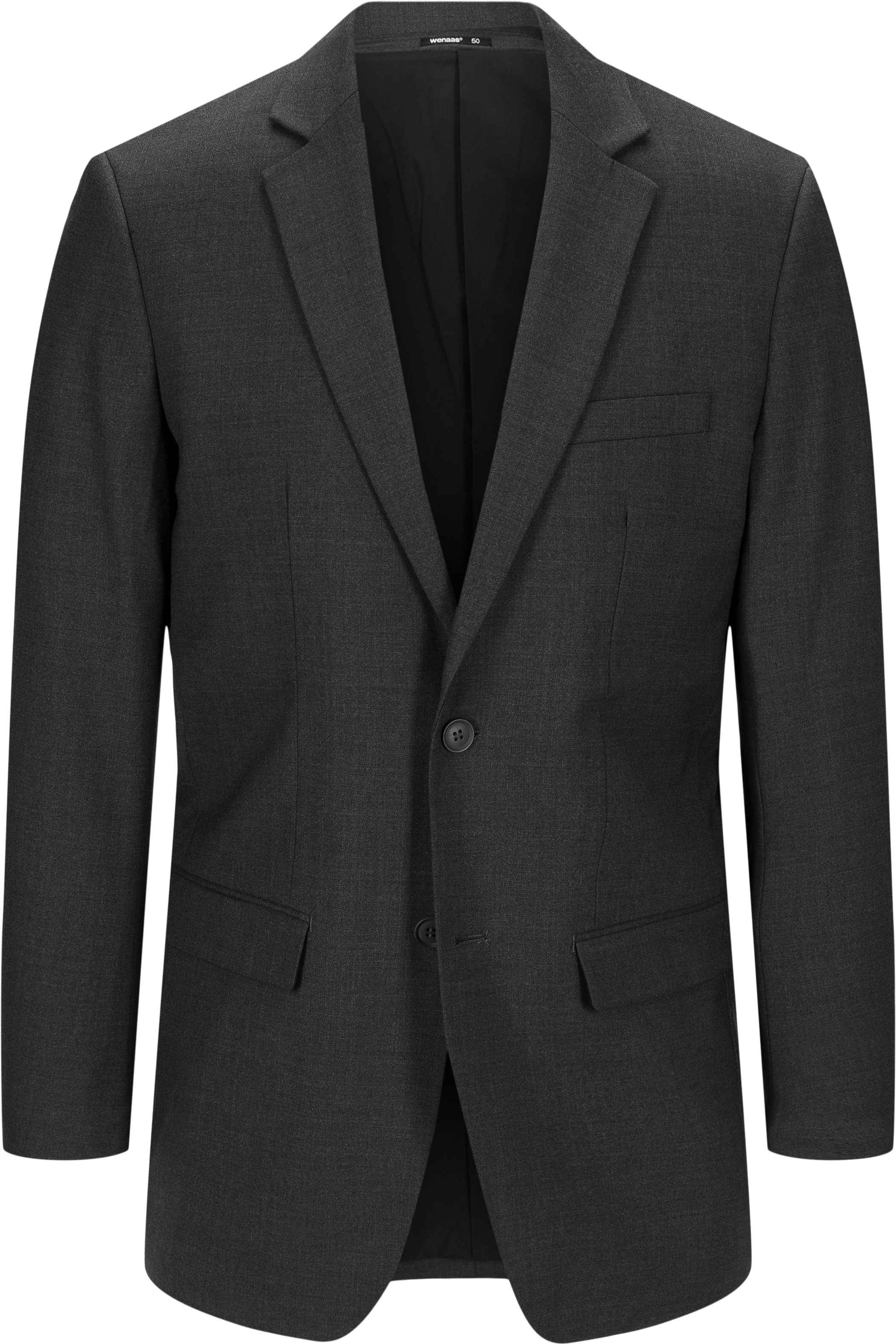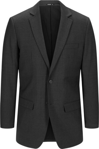 A single-breasted model with a collar, lapels, and two-button closure at the front. The jacket has long sleeves with a closed slit and four decor buttons at the sleeve opening. Double welt pockets with a flap in front on both sides and a slanted chest pocket on the left side. On the inside, the jacket is lined with stretch lining and has double welt pockets with flap and button closure on both sides and a small coin pocket on the right side.