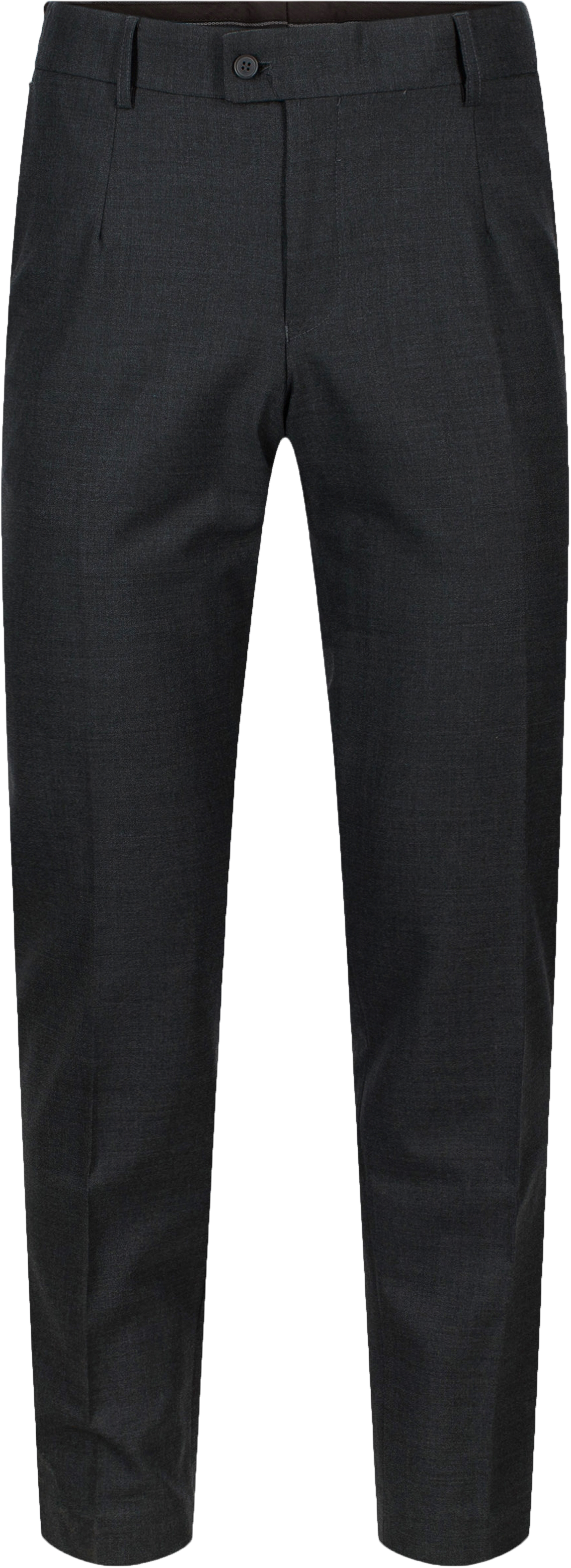 Men's trousers with stretch and slim fit trousers with stretch, two slash pockets in the front, and two double welt pockets in the back with button closure. Waistband with silicone on the inside. The trousers have a zipper, button, and a hook and eye in the front. The trousers are lined with elasticated lining down to the knees both in the front and back, which provides additional comfort and improved mobility.