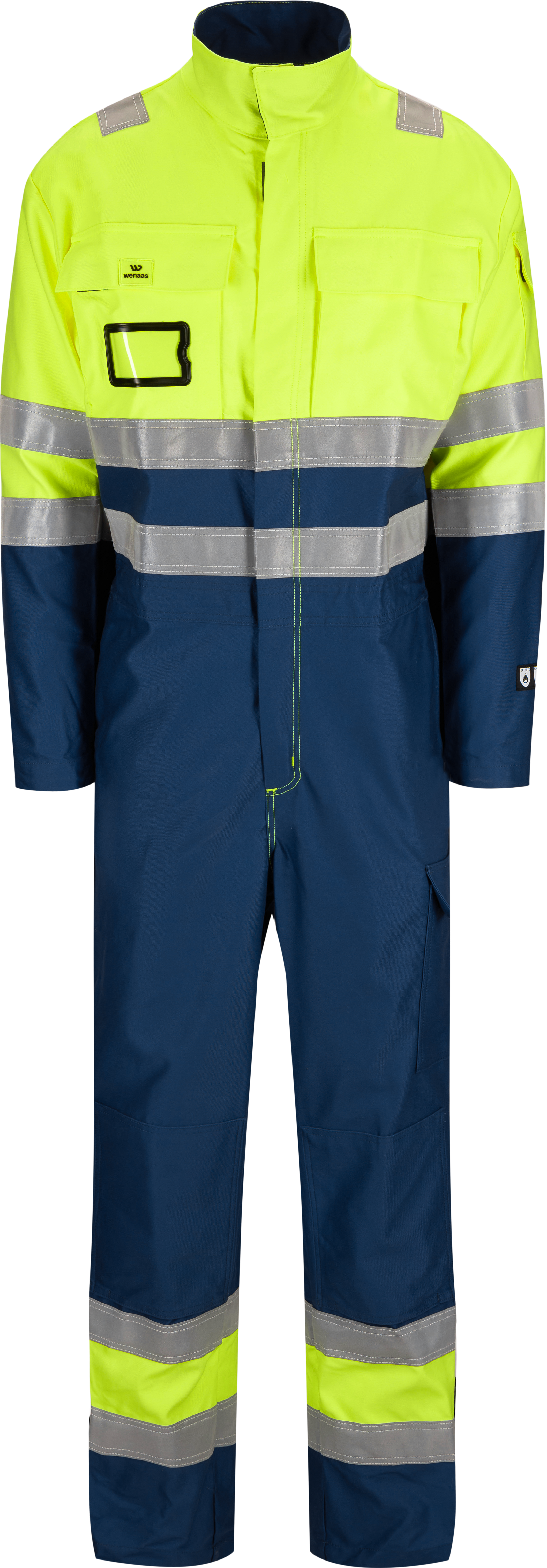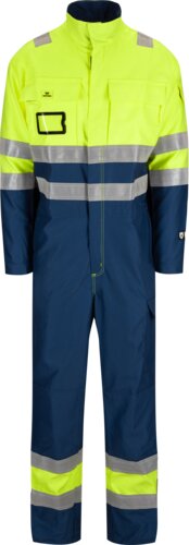 Comfortable flame-retardant coverall with hidden zipper in the front. High-neck collar, extended pleat in back and elastic waist ensures a good fit. Several practical pockets and adjustable cuffs and legs. The jacket is suitable to wear when protection is needed against arcs and flames, in addition to being highly visible.