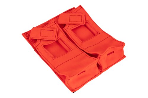 Detachable double radio pocket for the left chest with expansion on sides and bottom, the inside of the bottom has reinforcement material. In the middle of each pocket a window for the display of the radio. Loop with velcro, for closing the pocket.