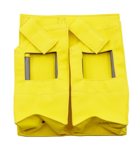 Replaceable pocket panel, sturdy velcro closure, radio pocket for two emergency radios, closure with strap and velcro, window for radio display, drainage hole in the bottom, reinforced loop.