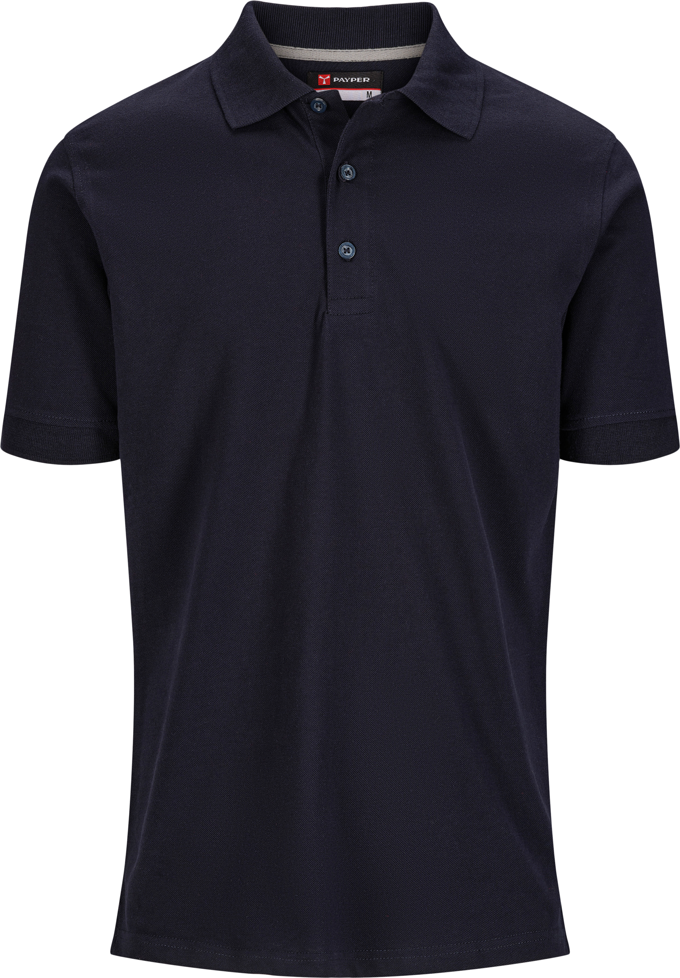 Men´s polo T-shirt with short sleeves, 3 matching, opalescent buttons, ribbed cuffs, and slits at sides, Concealed seam inside collar with contrasting band and reinforcing seams at sides.