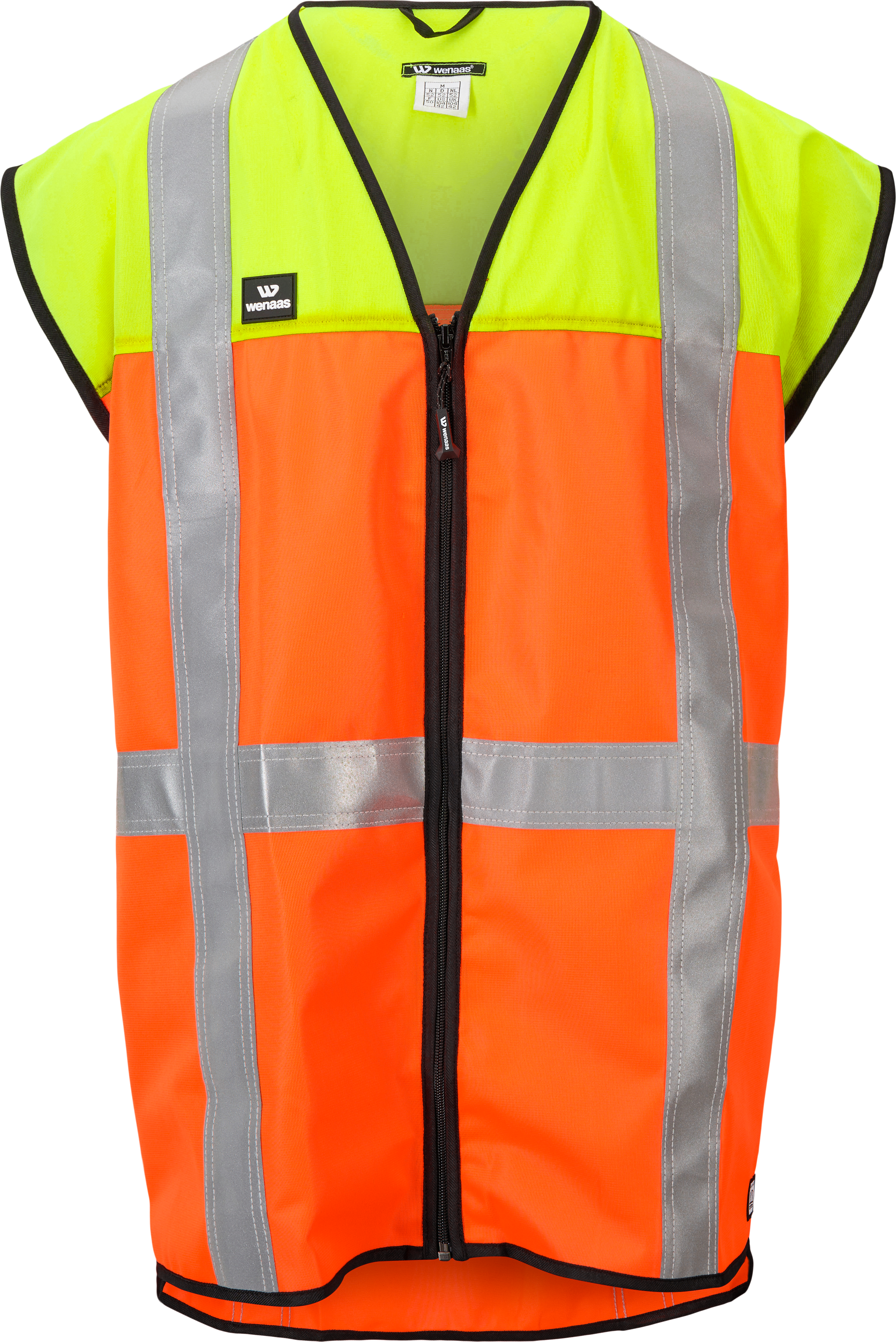 Durable hi-vis vest with excellent breathable properties. Zipper in the front, contrasting fold in the front and back. Contrasting band around the neck, opening in front, thumb holes. Reflective band ensures optimal visibility.