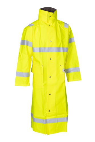 Raincoat Oslo antiflame with reflector. 100% elastomer coated polyester, reflector on sleeves, chest / back, bottom.