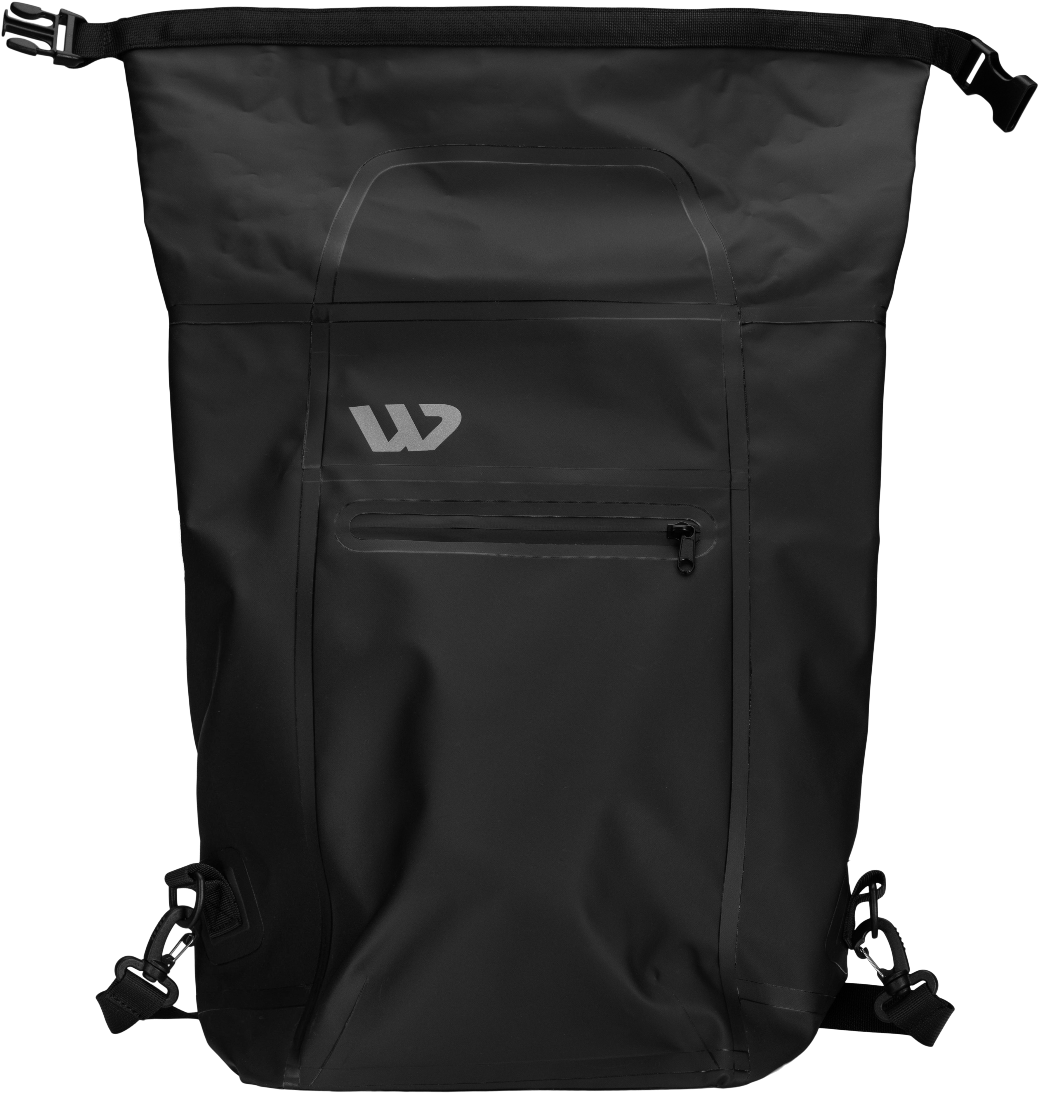 Solid and water-proof backpack with tapered seams. The backpack can be folded/rolled both forwards and backwards and closes with a snap button. Strap, lined back and adjustable back straps for increased comfort. The bag has a big pocket inside and an outer pocket with a water-proof zipper. Suitable for work and leisure.