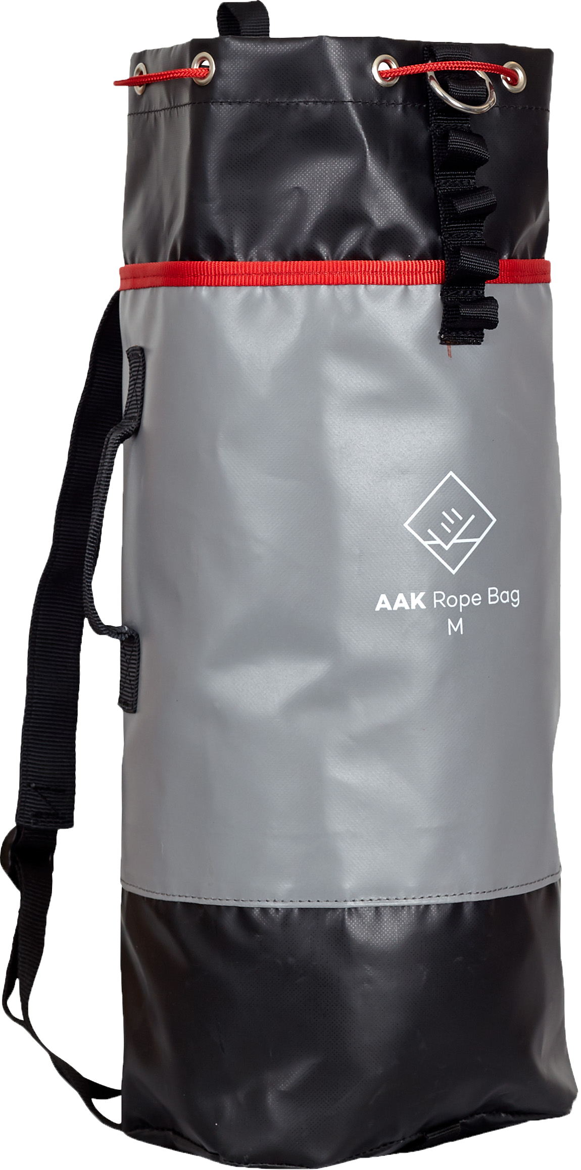 Rope bag in sturdy PVC coated nylon, lacing closure for storage of rope and other PPE. Holds pitches up to 65 m, 11 mm rope.