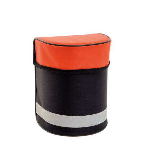 2.5-liter storage bag for half masks with fixed filter, stitched construction, protective cover with hook-and-loop closure, attaches to belt