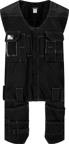 Strong, durable waistcoat adapted for use with a safety harness. Hidden front zip allows extra width if closed with outer zip. Cordura® tool holders provide durability and long life. Hanging pockets with Cordura® both front and rear as well as many other practical pockets. Extended back section gives good protection for the lower back. The tradesperson´s waistcoat has mesh in the back for ventilation. Ideal for tradespersons, in particular if you are working at a height and need to combine the waistcoat with a safety harness.Show less