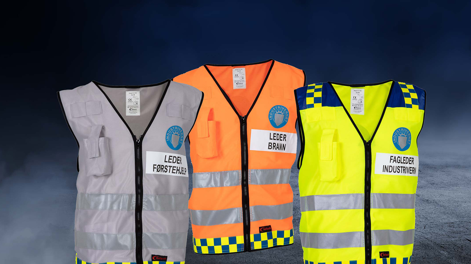 NSO has received input and feedback from industrial safety services all over Norway with regard to how the new vests should be designed. The blue squares and the shoulder section of the new “on scene commander” vest is inspired by the blue colour of the industrial safety service and the industrial safety logo. The other operative functions in fire, police and medical services also have squares on their vests.