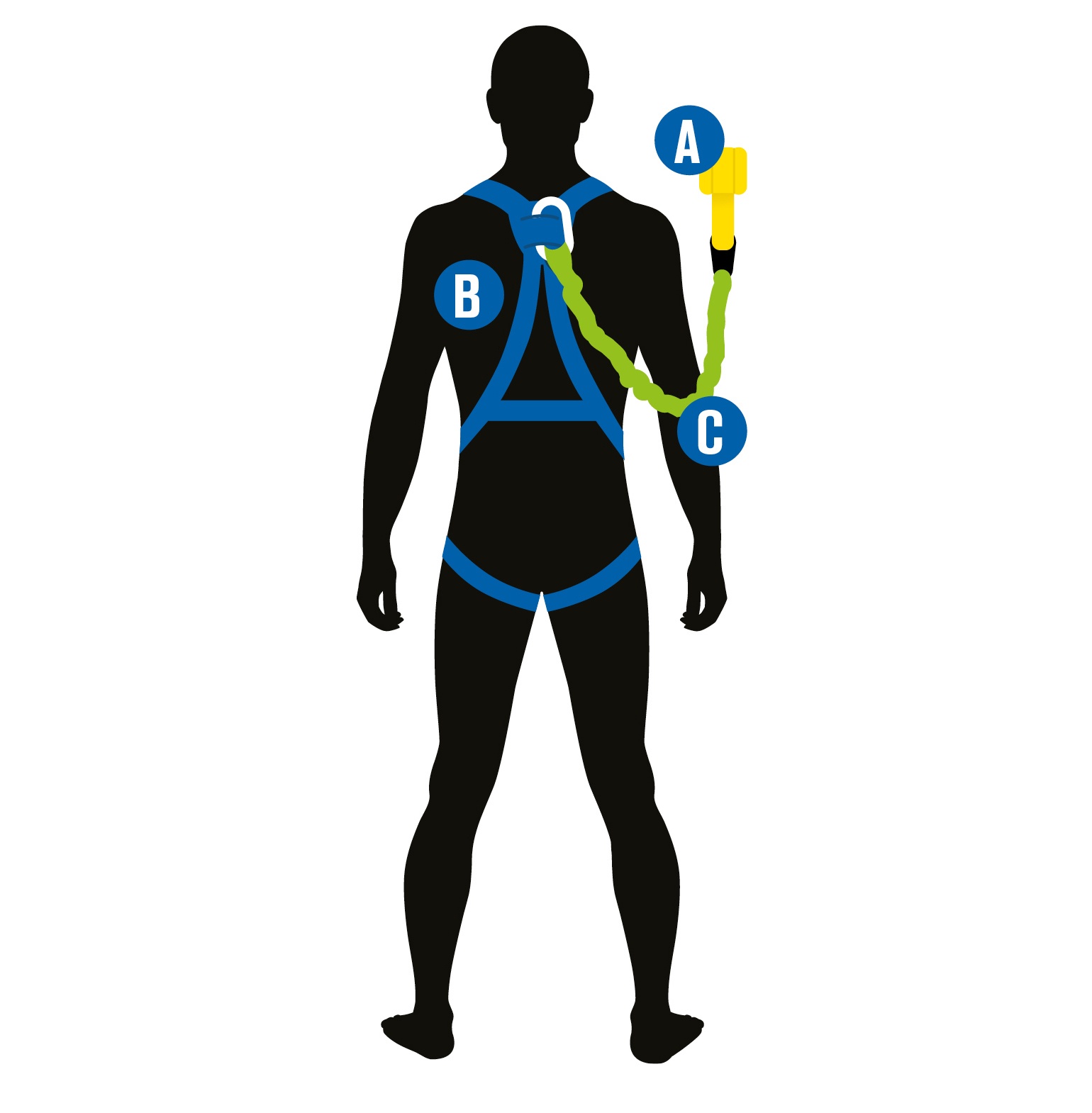 Et personlig fallsikringssystem settes sammen av tre komponenter etter ABC-prinsippet; «Anchorage», «Body wear» og «Connector» – eller på norsk: forankringsanordning, kroppssele og forbindelsesline/koblingsanordning.