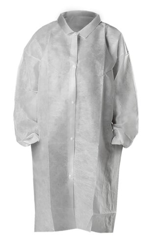 Besøksfrakk i polypropylen for engangsbruk. Egner seg godt for næringsmiddelindustri, catering, laboratorium og farmasi.