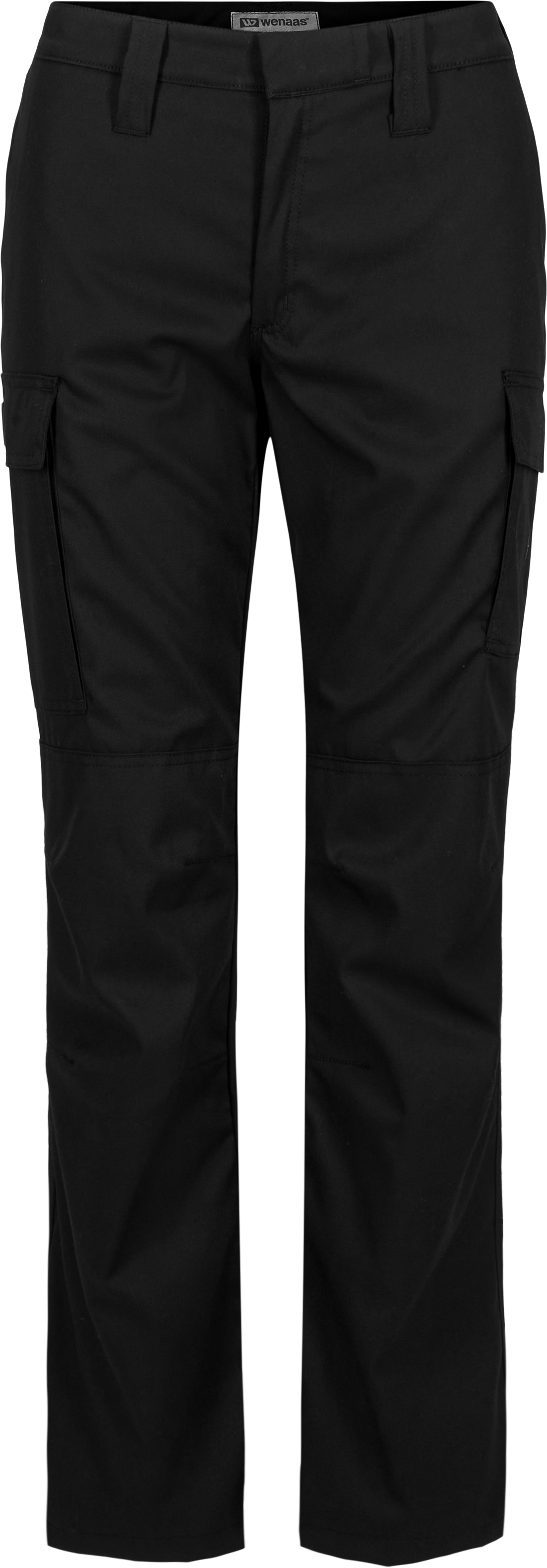 Behagelig damebukse med mange praktiske lommer. Baklommene har glidelås under klaff og innvendige kneputelommer. Egner seg godt som en pen og praktisk arbeidsbukse eller uniformsbukse.