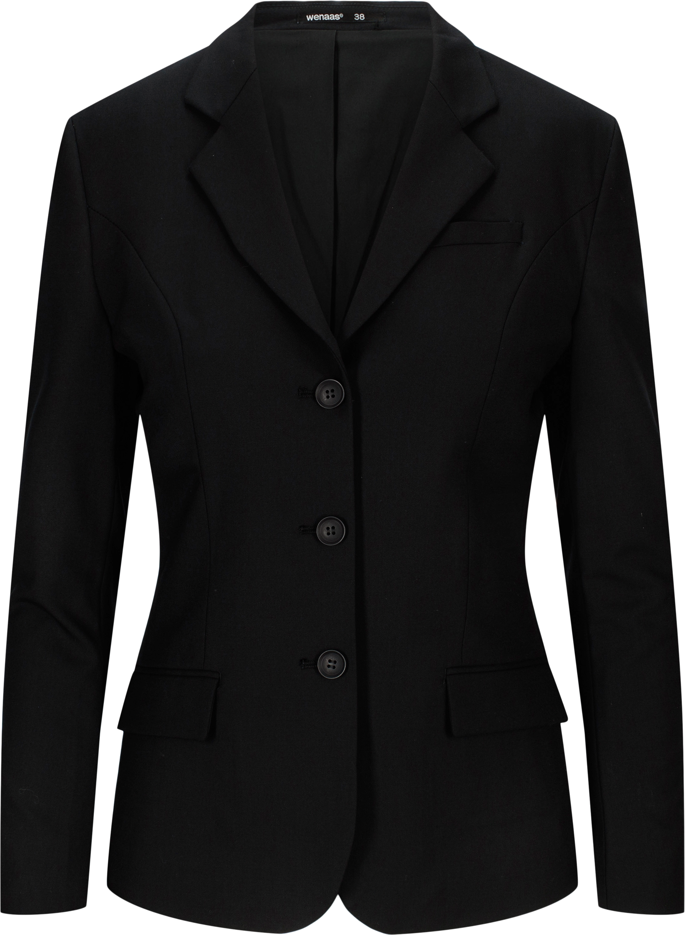 Formsydd, slim, enkelt-spent blazer med stretch for dame. Jakke med krage og slag, samt tre praktiske lommer foran; to dobbelt passepoilerte lommer med lommeklaff og en brystlomme. To-søms ermer med lukket splitt og tre pynteknapper på hver erm. Prinsessesømmer foran og bak og jakken lukkes med tre knapper midt foran. Innvendig har den to praktiske innerlommer og elastisk fôr som gir bedre bevegelsesmulighet.
