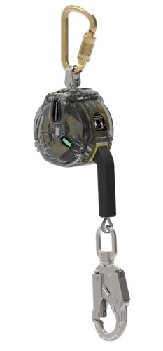 Fallblokk MSA Latchways 63203 med 3 m vaier, stålkarbin på toppen, vridbar stålkrok.