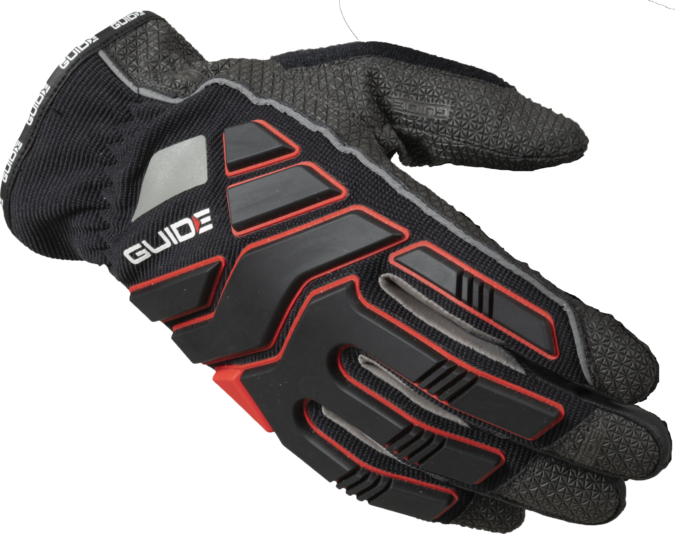 Slitesterk hanske uten fôr, og med støtbeskyttelse på håndbaken. Håndflaten er laget av Guide GTX kunstskinn med god fleksibilitet og godt grep. Den formsydde passformen gjør hansken komfortabel og fleksibel. Mansjetten er halvlang, og en strikk ved håndleddet sørger for at hansken holder seg på plass.