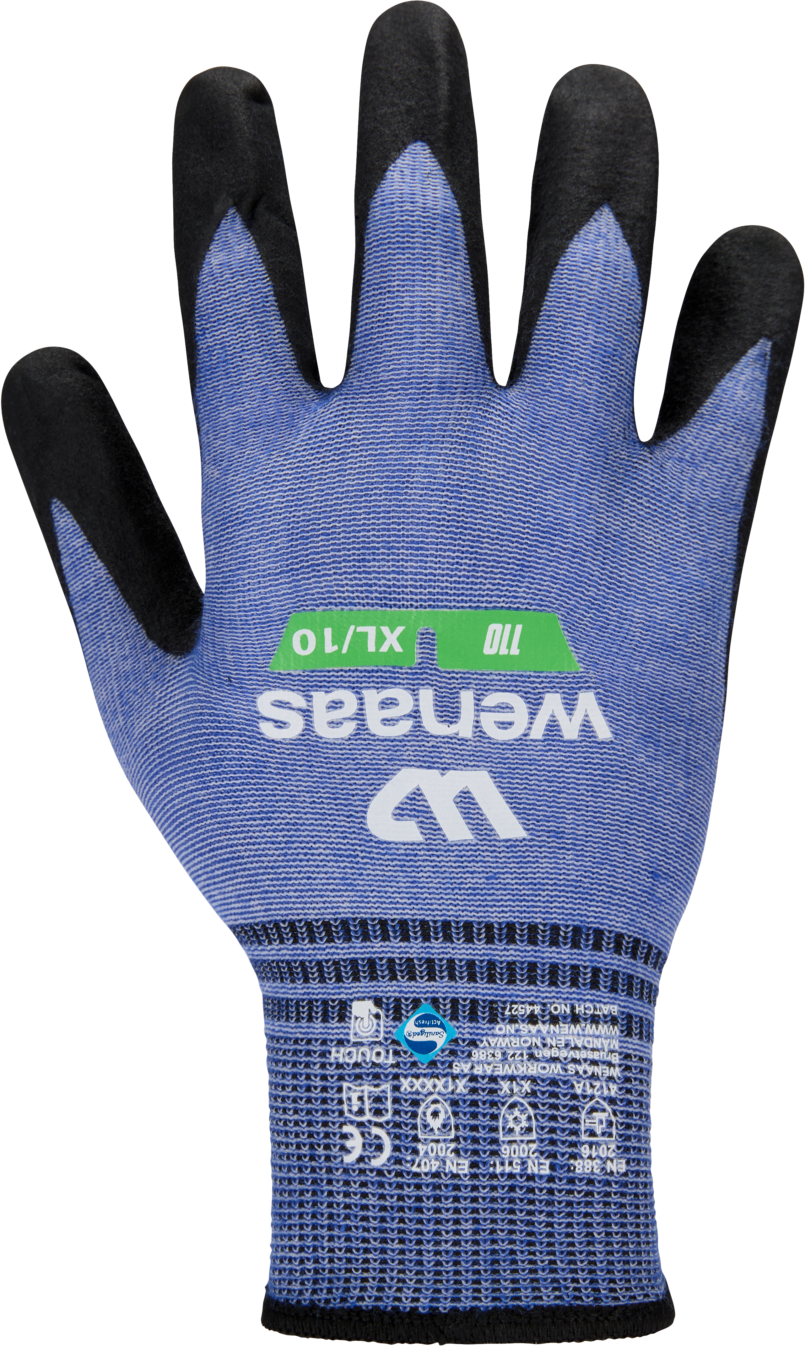 WFT-nitrilskum, nylon, kontaktvarme nivå 1, sømløs, touchscreen-kompatibel, høy komfort og god fingerfølsomhet, Sanitized-behandlet for bedre beskyttelse mot bakterier og lukt. OEKO-TEX® STANDARD 100 sertifisert. Bunt: 12 - Kartong: 120.