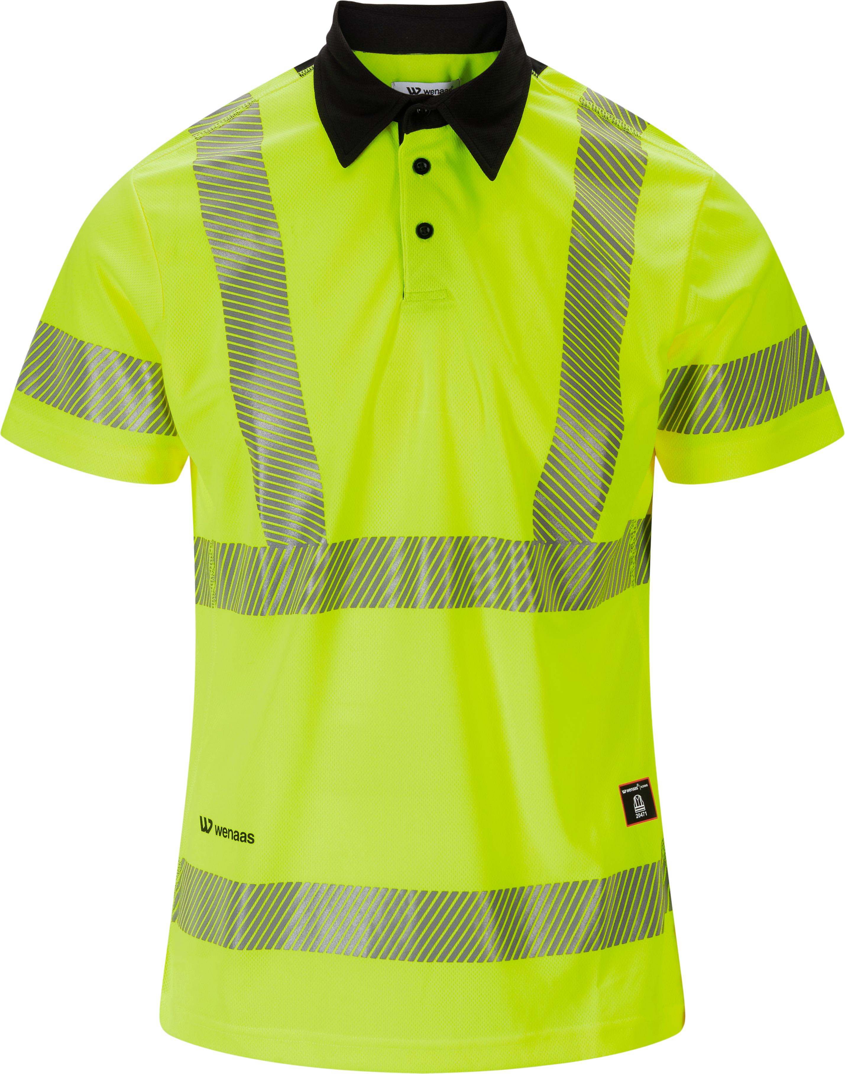 Lett og luftig ergonomisk designet synlighets piquet-skjorte. Formsydd i fuktransporterende Meshstoff med ekstra ventilerende panel i nakke og under ermer. Segmenterte refleksbånd gir god bevegelsesfrihet.
