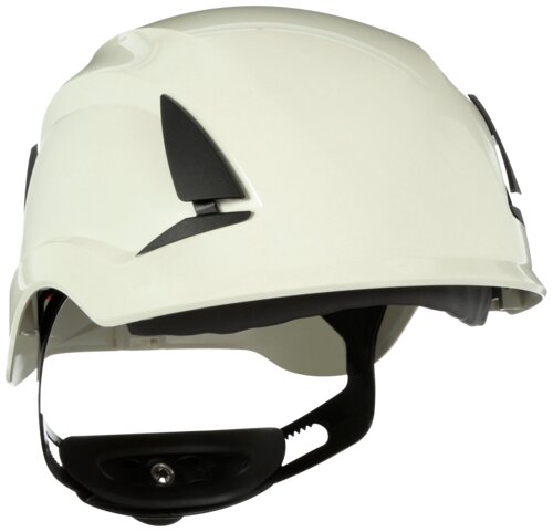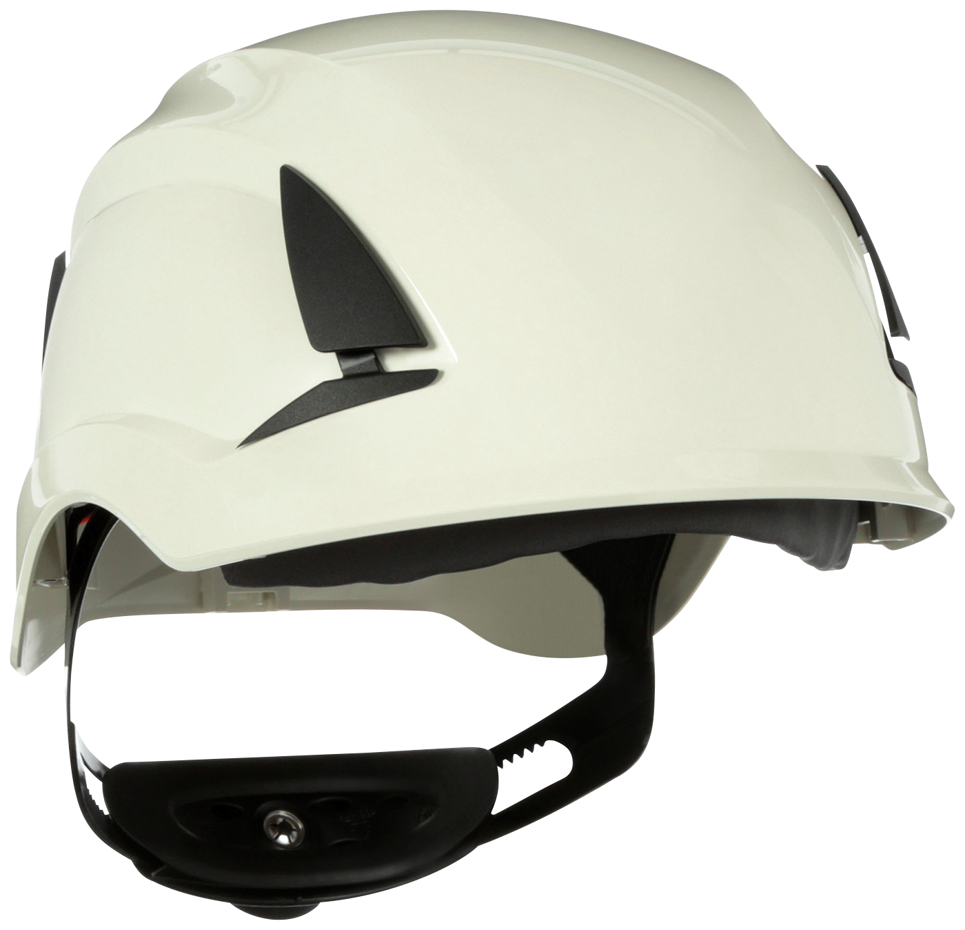 Uventilert hjelm uten brem for fritt synsfelt oppover, brukervennlig rattjustering med lavt plassert komfortbånd, Uvicator-sensor som indikerer UV-slitasje, anbefalt levetid 5 år fra produksjonsdato, 30 mm slissespor for tilbehør, passer hodeomkrets 50–63 cm, vekt 351 g, kartong 4 stk
