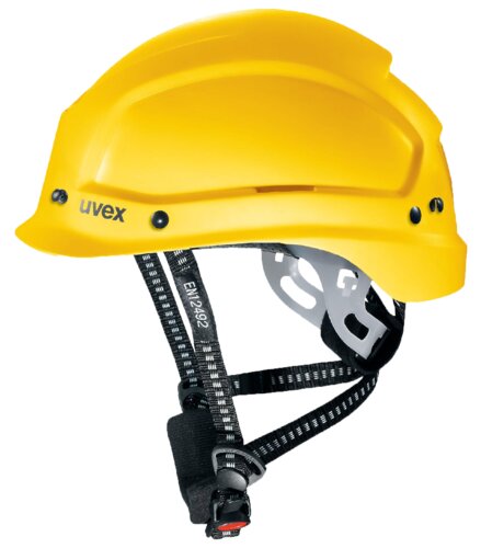 Multifunksjonshjelm med kort brem for god sikt oppover, for arbeid i høyden og til redningsarbeid. 6-punkts rattjustert innredning med tekstilbånd og komforbånd, for individuell justering og høy komfort. Integrert lyktefeste, ventilasjon på baksiden. Leveres med to hakereimer. Samsvarer med EN 397 med topunkts hakereim og EN 12492 med firepunkts hakereim. 30 mm slissespor for montering av tilbehør. Størrelse 52-61 cm.