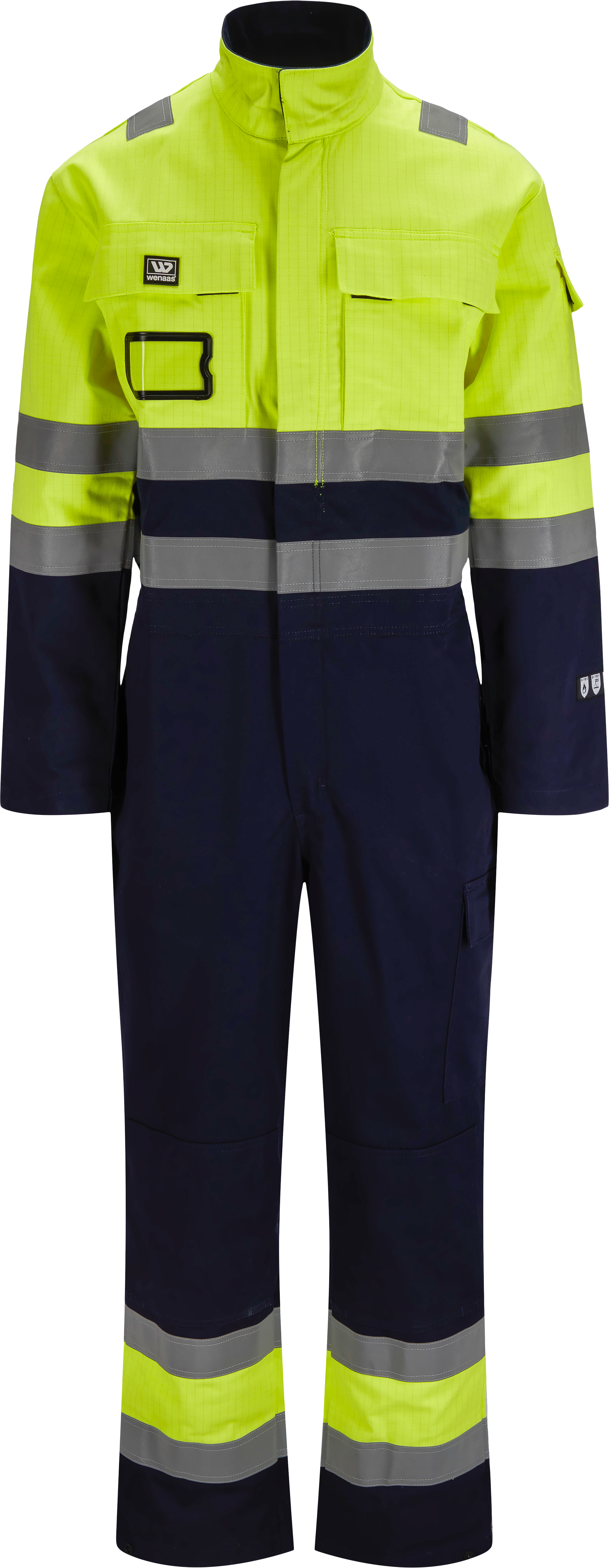 EN ISO 13688:2013+A1:2021, EN 1149-5:2018, EN ISO 20471:2013+A1:2016, klasse 2, EN ISO 11612:2015, A1+A2 B1 C1 E3 F1, IEC 61482-2:2018, APC 1 (4 kA), ATPV 14 cal/cm², EN ISO 11611:2015, klasse 1 A1+A2