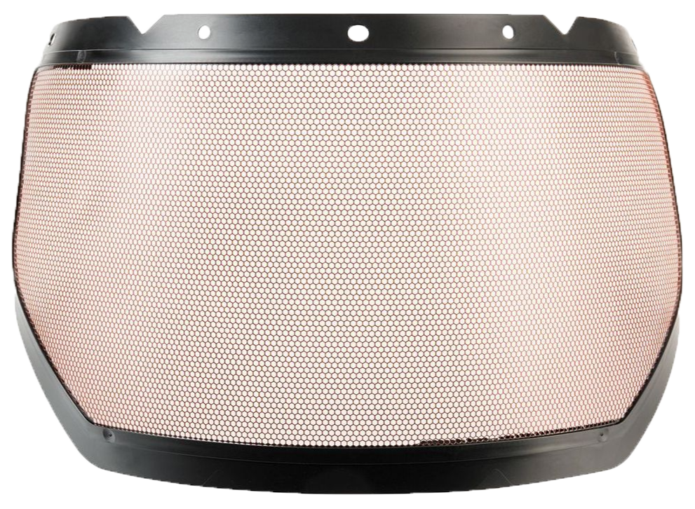 Nettingvisir for bruk i kombinasjon med MSA V-Gard-hjelmer med visirholder eller direkte på hodefeste. Bredt ansiktsdekket nettingvisir laget i rustfritt stål med utmerket synlighet og visuell lystransmittans på 74 % (Lysreduksjon er bare ~26 %). Brunfarget for å redusere lysrefleksjon. Kan brukes med hjelmmonterte øreklokker.