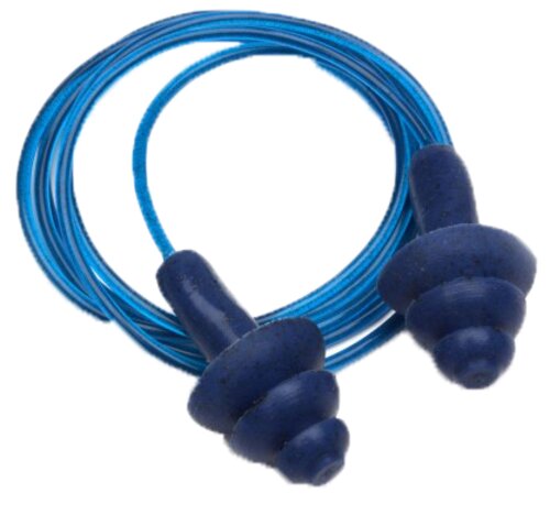 Detekterbare og gjenbrukbare ørepropper med snor innebygd med metallspon. Tre flenser av fleksibel gummi for suveren komfort. Kan rengjøres med såpe og vann. Kartong: 20 esker à 50 par.