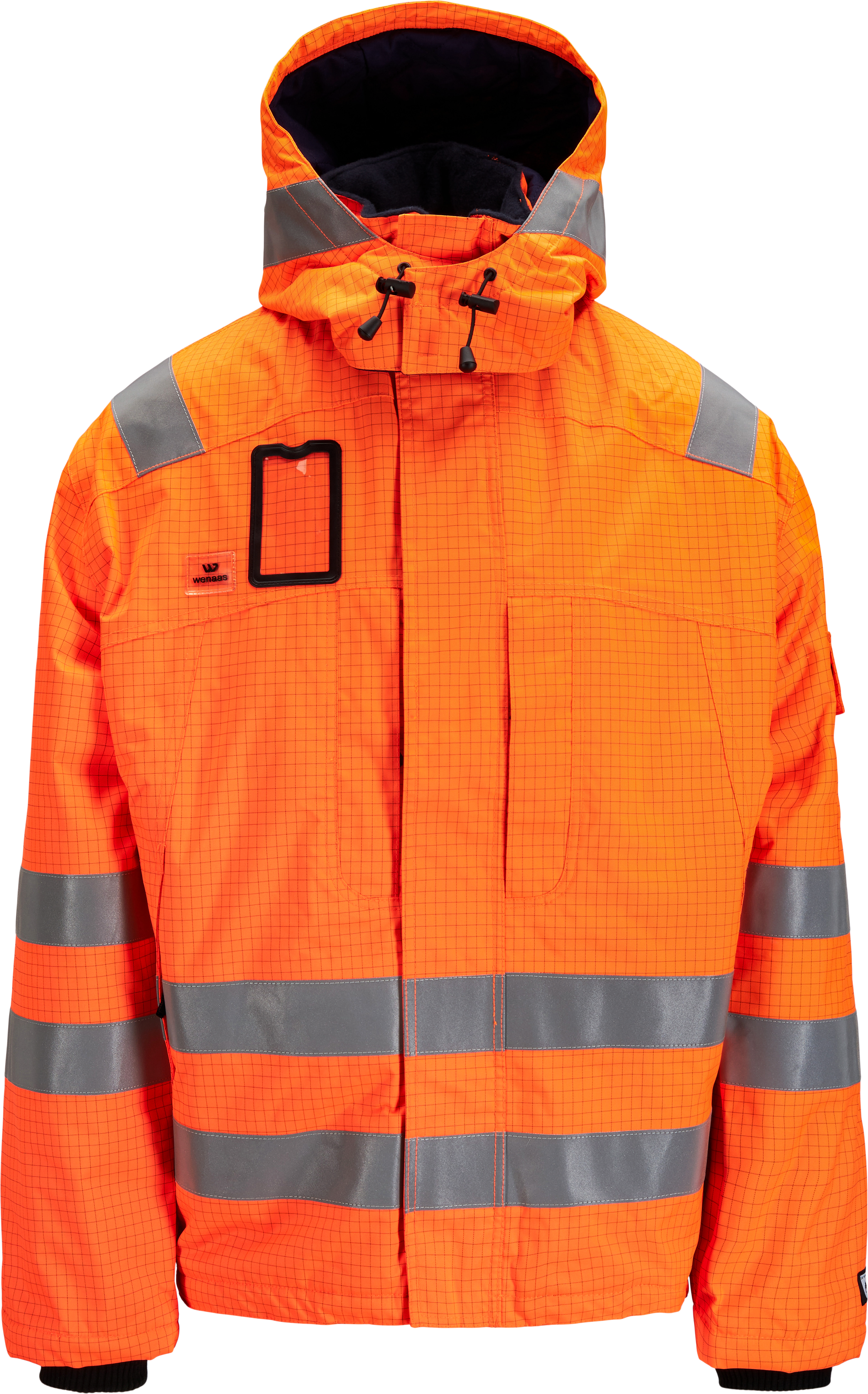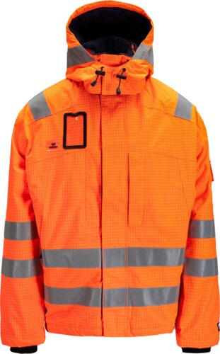 Vanntett og slitesterk vinterjakke med vattert for. Skjult glidelås i front, krage med fleecefor og flere praktiske lommer. Forlenget ryggstykke for å holde korsryggen varm og regulering både i nedkant og i avslutning av erme. Jakken egner seg godt for deg som skal oppholde deg i kalde miljø, trenger beskyttelse mot flamme og i tillegg trenger å være synlig.