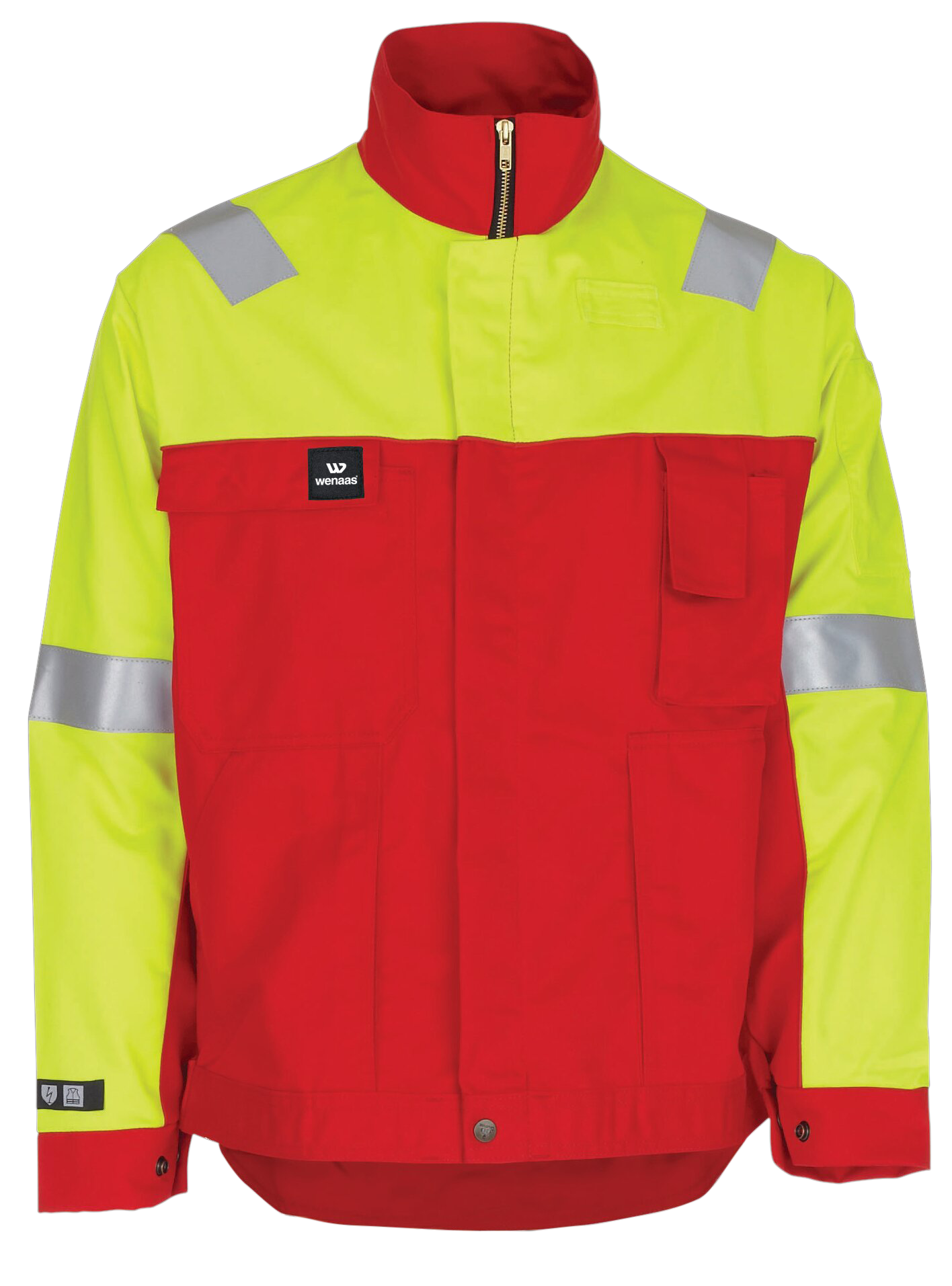 Flammehemmende jakke med skjult glidelås i front, flere praktiske lommer og fold i rygg for økt bevegelighet.