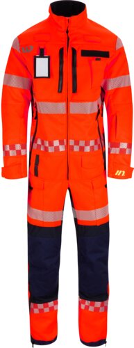 Flammehemmende redningskjeledress i behagelig stretchmateriale. Stående krage, bærestykke foran og skjult glidelås. Ventilasjonsglidelåser i armhuler sørger for maksimal komfort og mulighet for lufting. Borrelås for feste av navn/rangmerke. Flere praktiske lommer, reflekser og justeringsmuligheter.