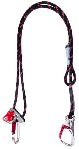 Posisjonerings og støtteline. Enhåndsjustering, leveres med aluminium twist karabin for tilkobling i sele og liten 2-veis presslåskarabin i motsatt ende.