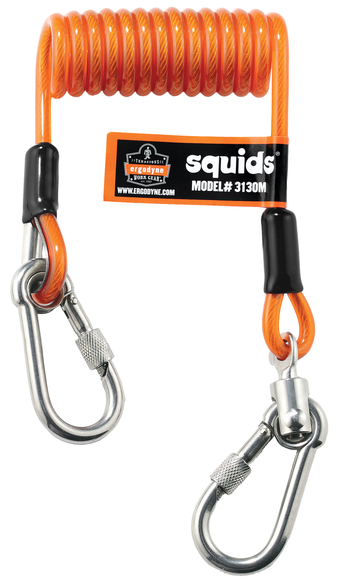 Spiralline Squids® med dobble karabinere, som holder lengden på linen nær forankringspunktet. Det reduserer fare av fallende gjenstander. Patentert svivel fohindrer at linen floker seg. Den spiralformede linen reduserer muligheten for at den rykker tilbake. Sertifisert for en verktøyvekt på 2,26 kg. Kartong: 24 stk.