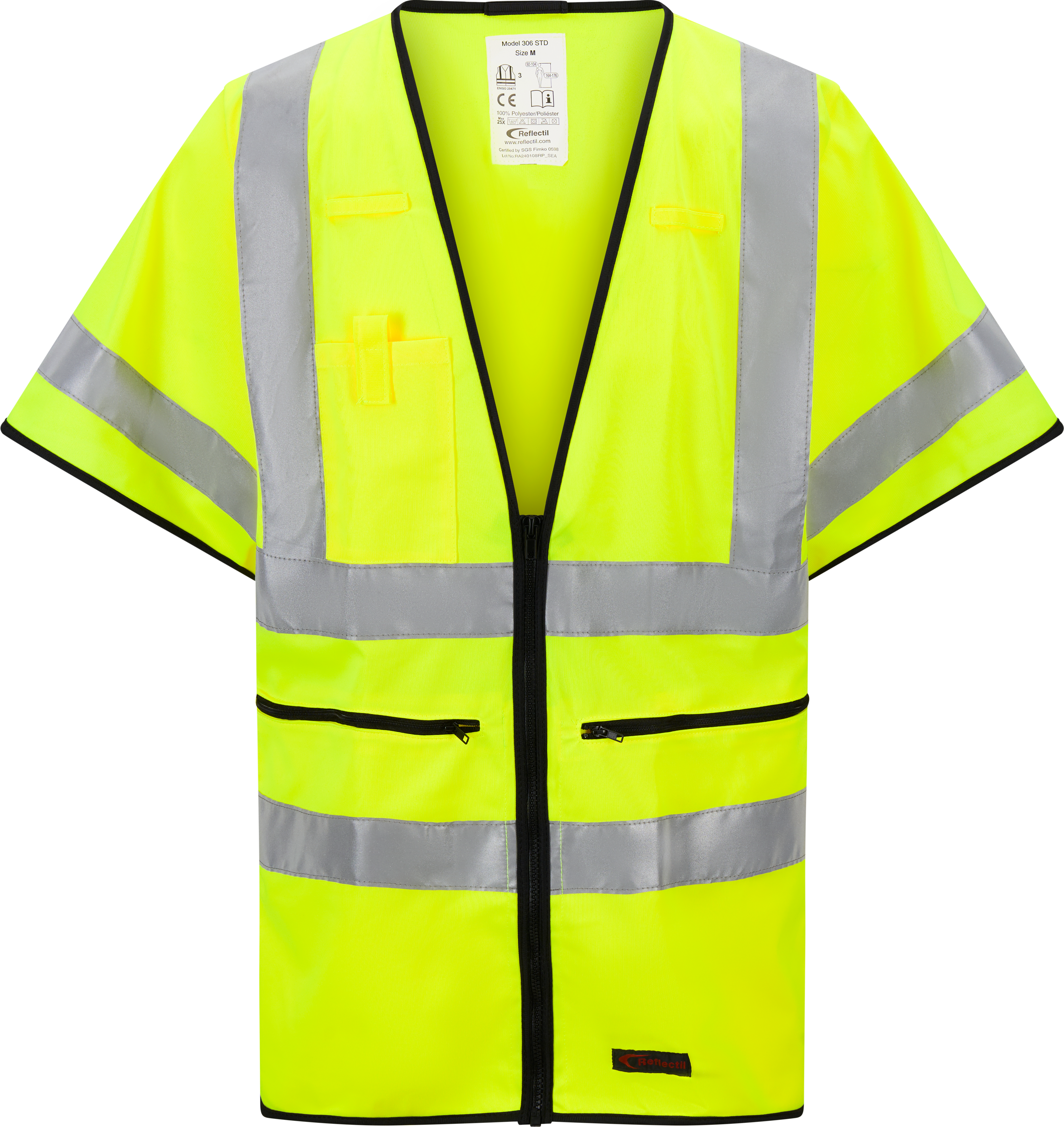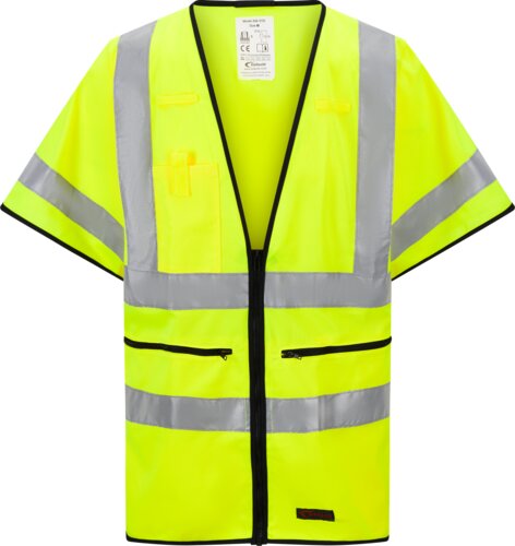 Synlighetsvest med ermer til albuen. Vesten har glidelås både i front og på frontlommer. Hempe til oppheng i nakke og flere hemper for oppheng av f.eks. penner på brystet. Refleksvesten egner seg til oppgaver der man må være godt synlig og samtidig har behov for vest med lommer og hemper for påheng av utstyr.