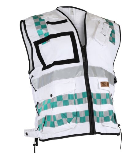 Slitesterk refleksvest med myk inside og blank utside. Uniformsvest med flere tilpasningsmuligheter. Unike bryst- og ryggpaneler tillater at vesten kan tilpasses med ønsket tekst. Man kan trykke logo inne i borrelåsrammene på bryst og på rygg, men også på avtagbare tekstpaneler. Flere praktiske lommer og hempe til radio. Borrelåsstripe for navnemerke på høyre bryst. Egner seg godt til bruk i helse- og ambulansetjenesten.