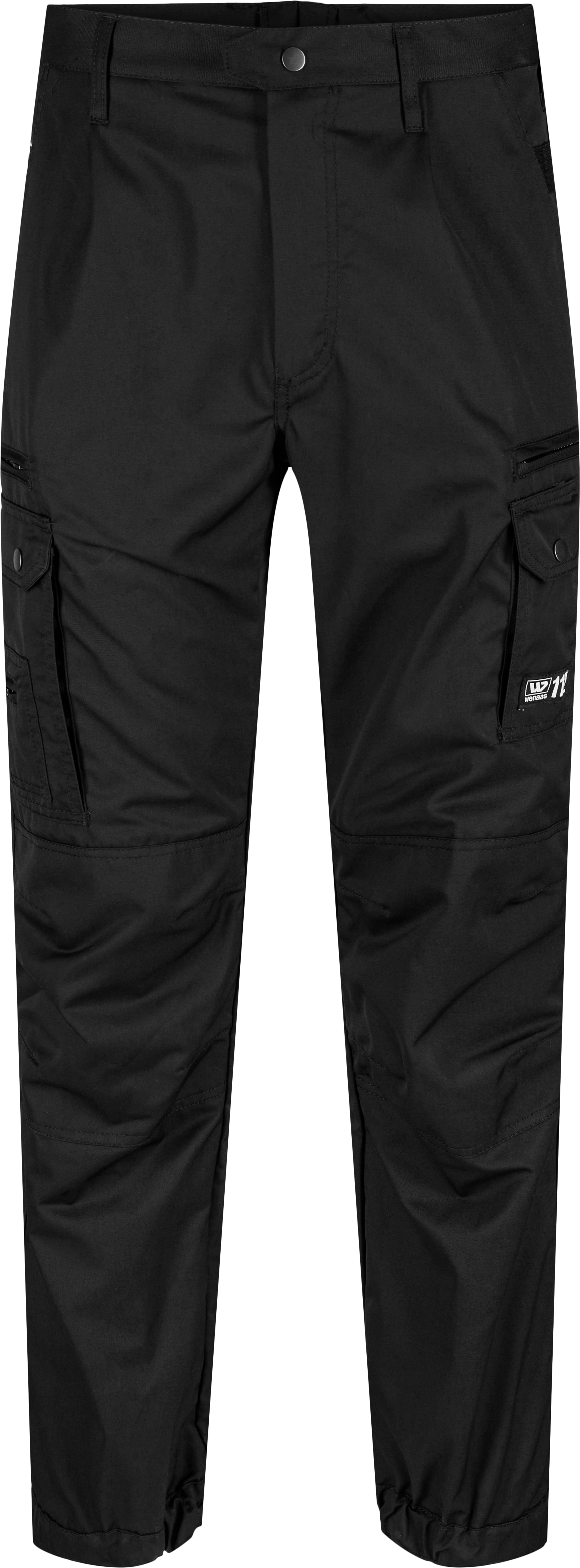 Action broek met twee zakken met rits op het dijbeen, grote zakken met klep en drukknoop aan de buitenzijde op het dijbeen, pennenzakje en smartphonezakje. In model genaaide kniegedeelten met versteviging. Verstelbare drukknopen aan de zoom.