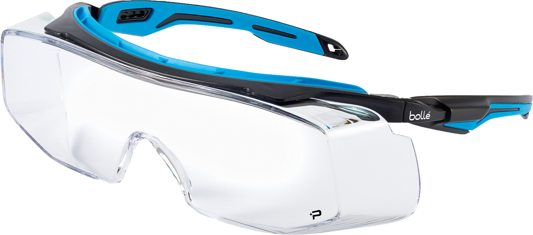 Lichte bril met een heldere lens om over een bril op sterkte te dragen. PLATINIUM® permanente anti-kras en anti-condens coating aan beide zijden, zachte beschermende bovenrand en zachte, flexibele pootjes met verstelbare lengte. Wasbaar. Gewicht 41 gram. Verpakking met 18 dozen van elk 10 stuks.