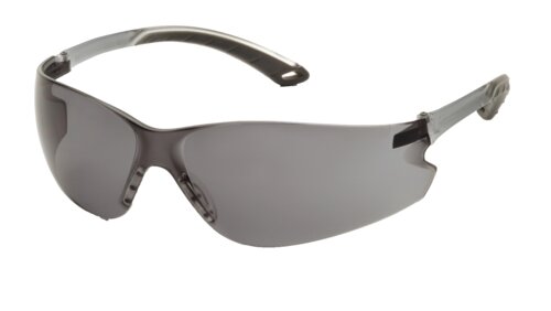 Pyramex Itek veiligheidsbril met grijze lens. Breed gezichtsveld, randloos ontwerp en goede zijdelingse bescherming. Anti-kras en anti-condens. Verpakking met 25 dozen van elk 12 stuks.
