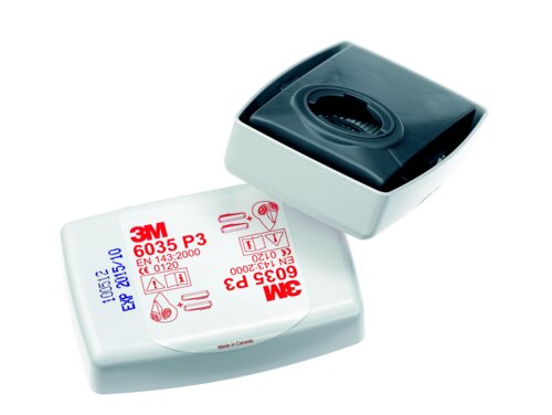 Deeltjesfilter P3R met een afdekking om het filter te beschermen tegen vaste deeltjes, hitte, vonken, water en vloeistoffen. Past op 3M half- en volgelaatsmaskers. Bajonetaansluiting. Verpakking met 4 dozen van elk 10 paar.