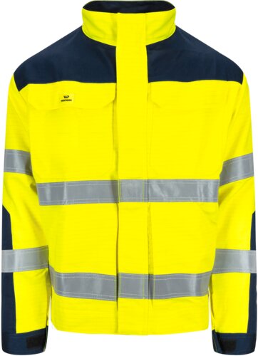 Comfortabele en duurzame zichtbaarheidsjas met verborgen rits aan de voorkant. Op rug te vouwen voor verbeterde mobiliteit, verlengd rugpand om de rug warm te houden en diverse handige zakken. Verstelbare taille en zoom. De jas is geschikt om te dragen wanneer bescherming nodig is tegen vlambogen en vlammen, en is bovendien goed zichtbaar.
