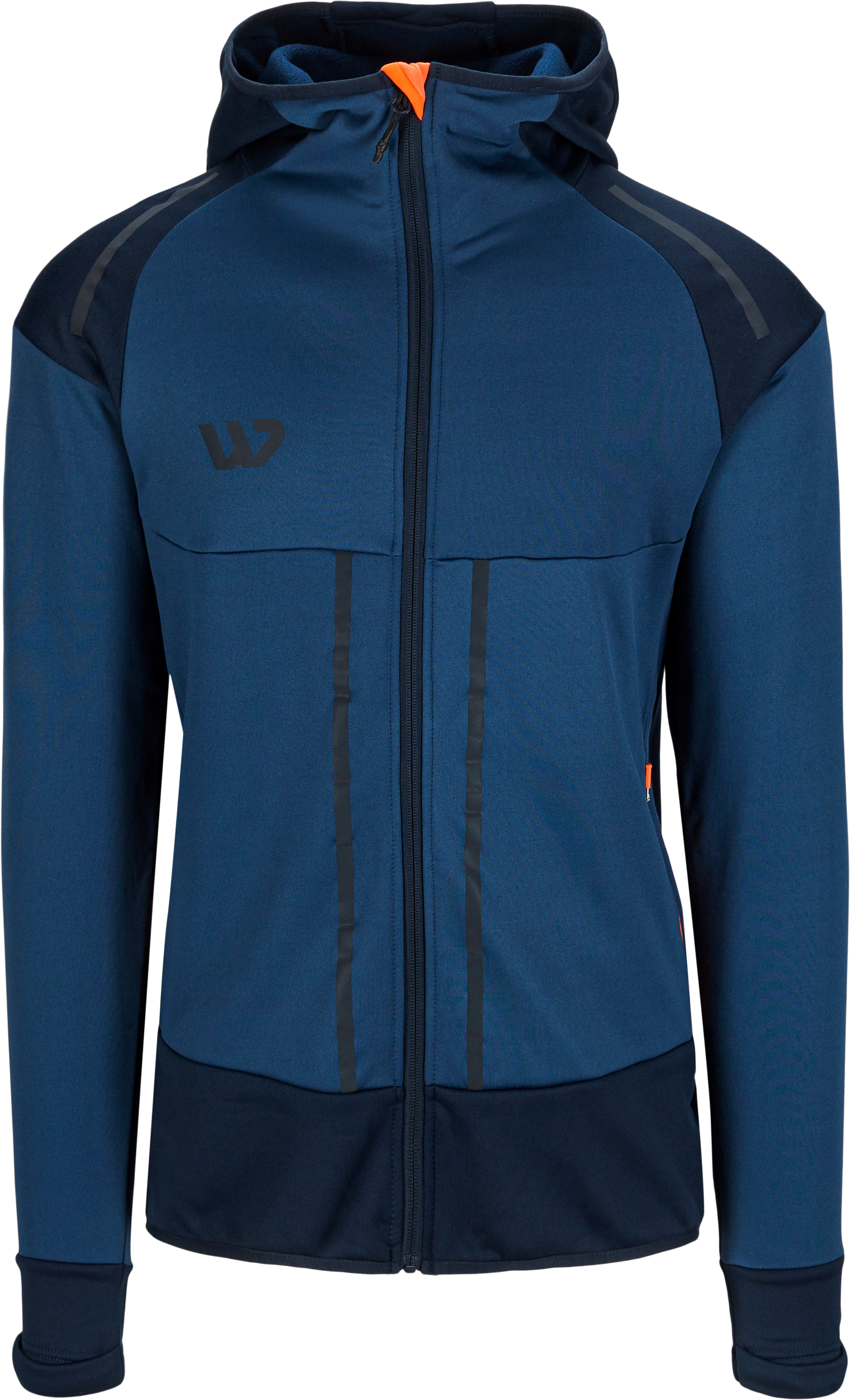 Stretch fleece jack, nauwsluitend, met een opstaande kraag met capuchon, rits aan de voorkant, lange raglanmouwen, duimgaten, twee zakken aan voorkant met rits, contrasterend materiaal in het rugpand, verlengd rugpand en kleine reflecterende details voor extra zichtbaarheid.