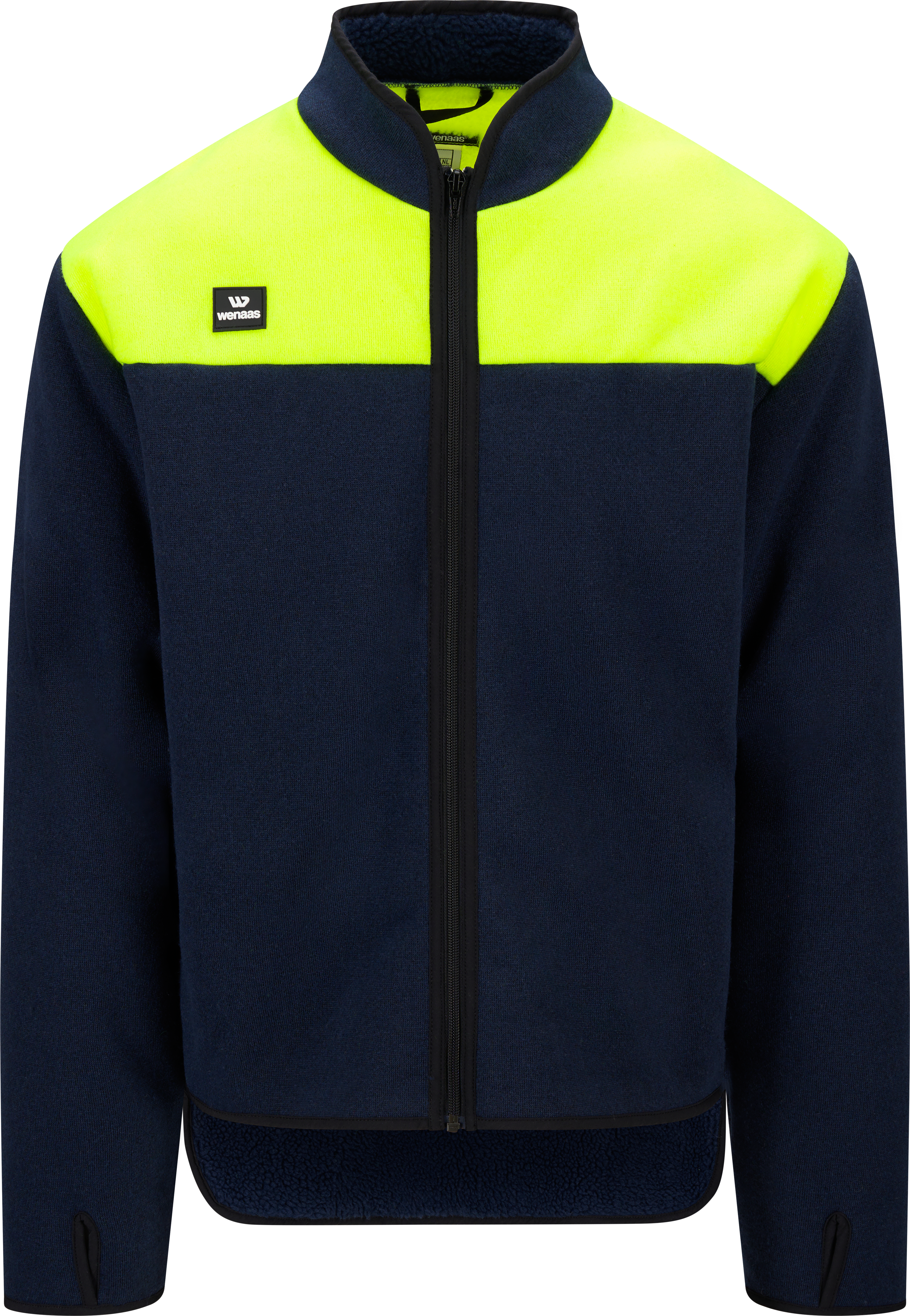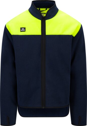 Zachte en warme fleecejas met contrasterende hi-vis vlakken en verlengd rugpand voor extra comfort. Voorzien van duimgaten, kraag en ritssluiting – geschikt als tussenlaag of lichte buitenjas.