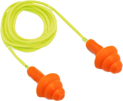Herbruikbare oordoppen met koord en drie lamellen van flexibel TPE-rubber voor uitstekend comfort. Reinigbaar met water en zeep. Per paar verpakt – 50 paren per doos.