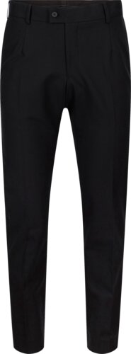 Herenbroek met regular pasvorm stretch, twee steekzakken in de voorkant en twee dubbele paspelzakken in de achterkant met knoopsluiting. Tailleband met silicone aan de binnenkant. De broek heeft een rits, knoop en een haakje-en-oogje in de voorkant. De broek is gevoerd met elastische voering tot aan de knieën, zowel aan de voorkant als aan de achterkant, wat voor extra comfort en een betere beweeglijkheid zorgt.
