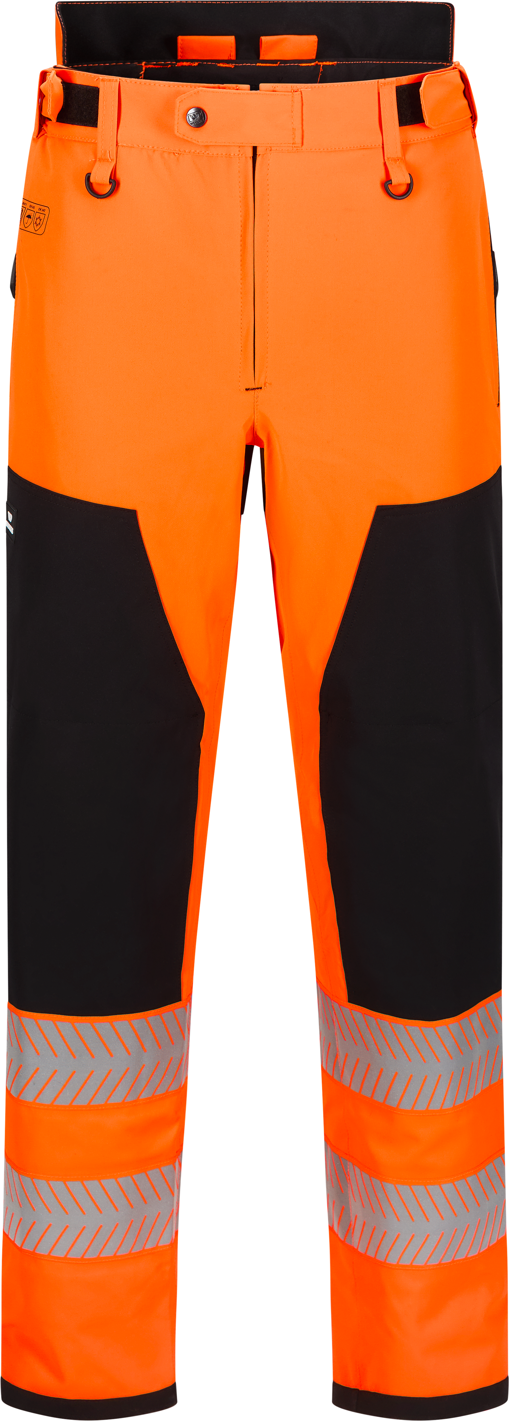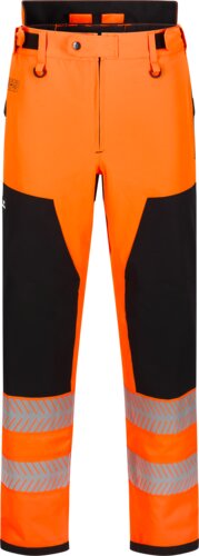 Waterdicht, zichtbaarheid klasse 2. Versterkte gebieden aan de voor- en achterkant zorgen voor extra slijtvastheid. Verstelbare tailleband, lussen voor bretels en riemlussen bieden flexibiliteit. Reflecterende banden rond de benen zorgen voor goede zichtbaarheid. Een ritssluiting en lange ritsen in de zijnaden zorgen voor gemakkelijk gebruik, terwijl getapete naden vocht buiten houden.