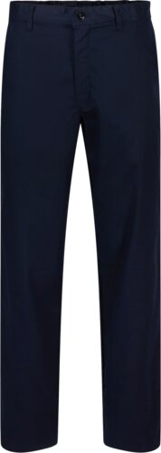 Koksbroek met ondersteuning aan de achterzijde, elastische taille, zeven riemlussen, gulp met kunststof knoop en rits, twee diagonale zakken aan de voorzijde en twee achterzakken.