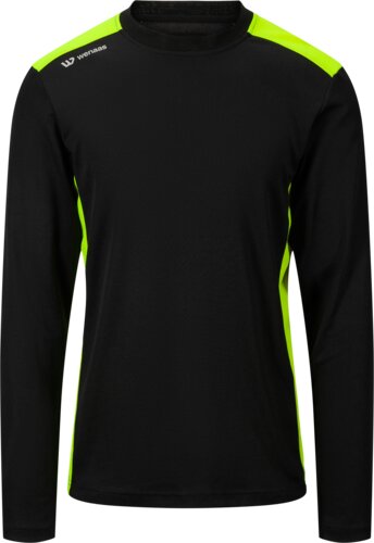 Nauwsluitend T-shirt voor dames gemaakt van comfortabel elastisch materiaal. Goede bewegingsvrijheid, korte mouwen en ronde ribgebreide halslijn. Contrasterende kleur op de schouders en zijpanelen.